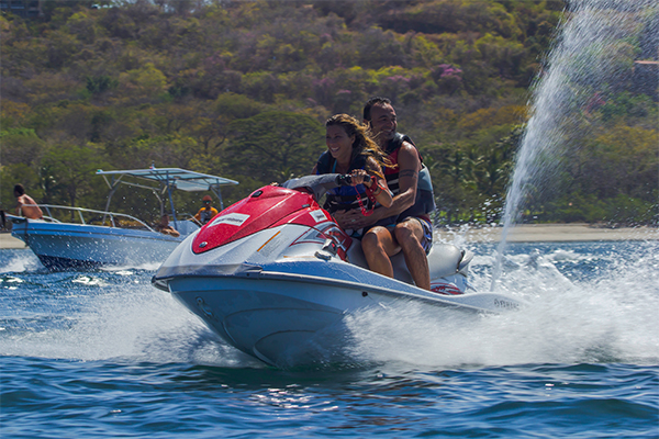 The two hour jet ski excursion consists of a tour through 5 or 6 beaches Some of them are Penca Prieta, Danta Dantica Honeymoon, among others It is possible to include a 30 minutes snorkelling tour at Honeymoon Beach.
